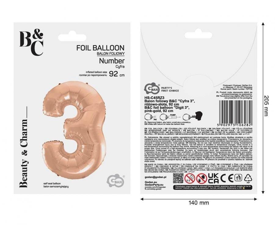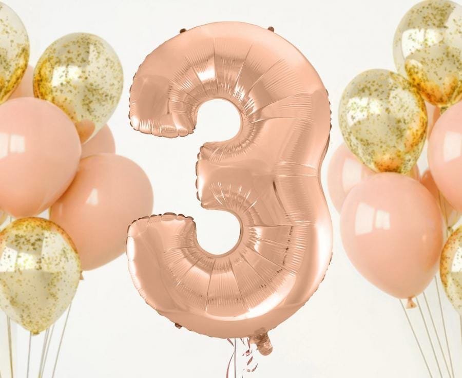 Folinis balionas 3 ROSEGOLD, 92cm.