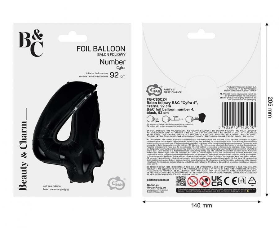 Folinis balionas 4 BLACK, 92cm.