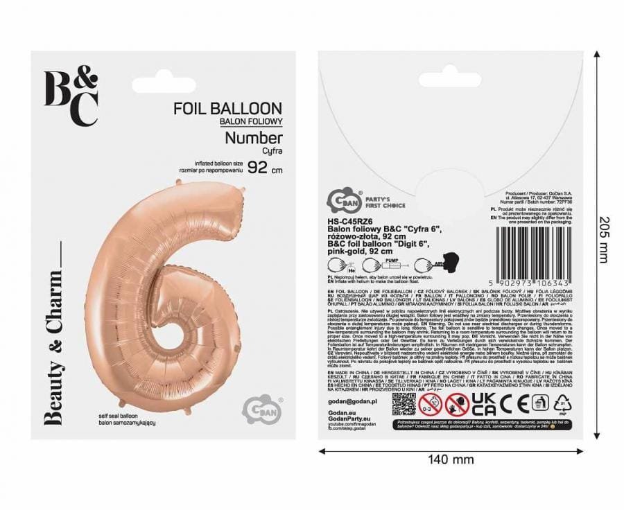 Folinis balionas 6 ROSEGOLD, 92cm.