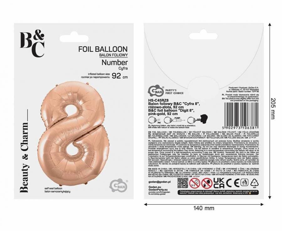 Folinis balionas 8 ROSEGOLD, 92cm.