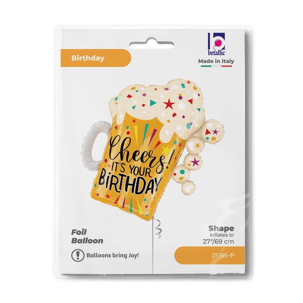 Folinis balionas BIRTHDAY FUN CONFETTI BEER GOLD