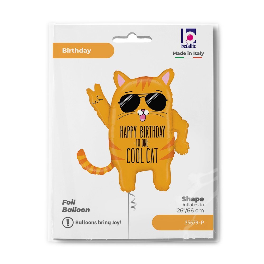 Folinis balionas COOL CAT BIRTHDAY YELLOW