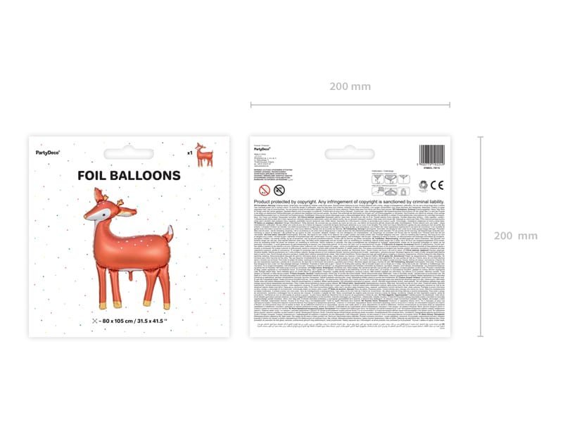 Matinės folijos balionas Elniai, spalvų derinys, dydis apytiksl. 80 x 105 cm (31,5 x 41,5 colio).