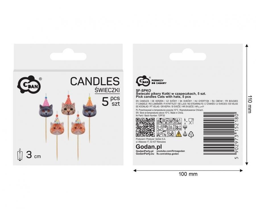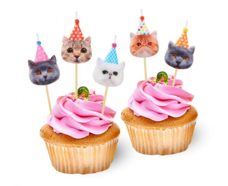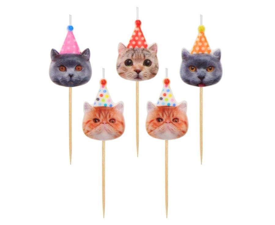 Gimtadienio žvakutės katinėliai su kepurėlėm., 3 cm., (1pak / 5 vnt.)