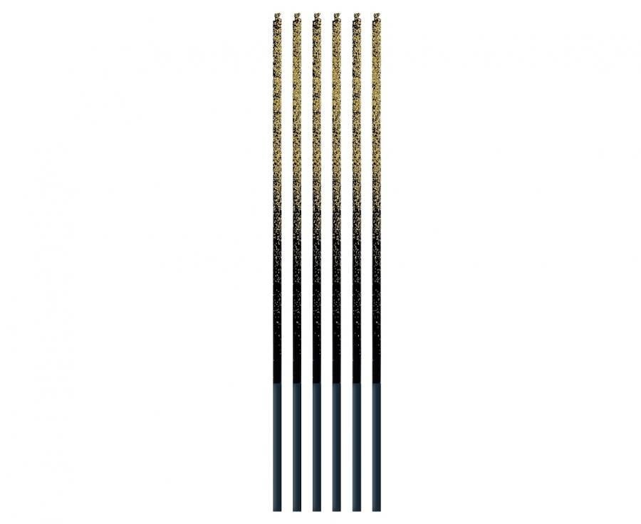 Gimtadienio žvakutės juodos su aukso spalvos blizgučiais, Dydis 3x3x170mm, (1pak / 6vnt)