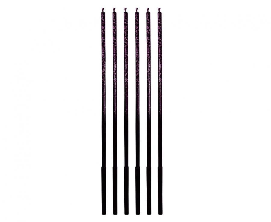 Gimtadienio žvakutės juodos su violetinės spalvos blizgučiais, Dydis 3x3x170mm, (1pak / 6vnt)