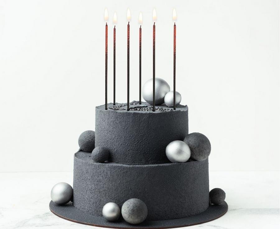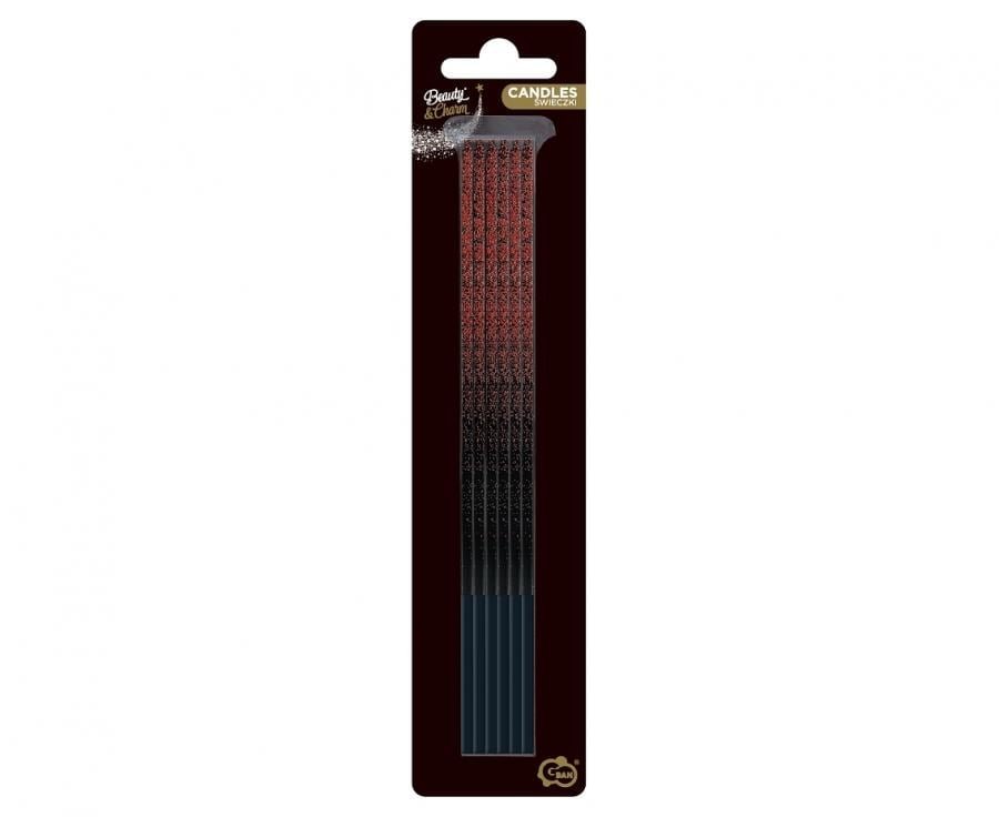 Gimtadienio žvakutės juodos su raudonos spalvos blizgučiais, Dydis 3x3x170mm, (1pak / 6vnt)
