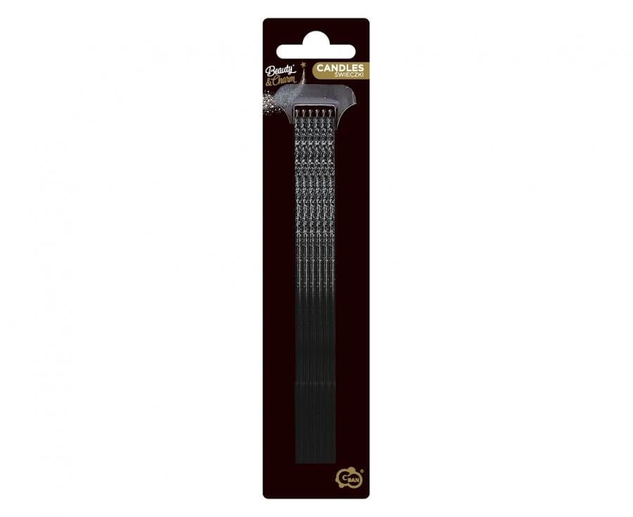 Gimtadienio žvakutės juodos su sidabrinės spalvos blizgučiais, Dydis 3x3x170mm, (1pak / 6vnt)