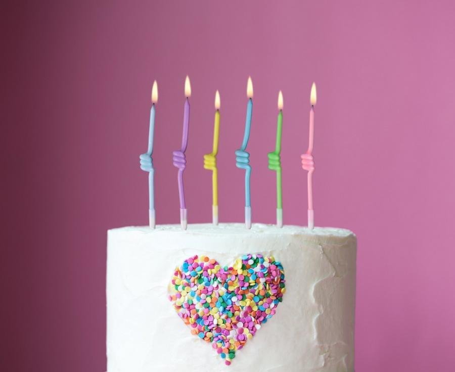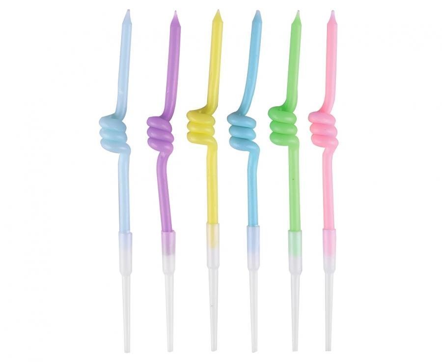 Gimtadienio žvakutės pastelinių spalvų, spiralės, 12 cm., (1pak / 6 vnt.)