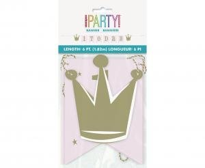 Šviesiai rausvos spalvos girlianda su auksiniu užrašu 1 TODAY, pagaminta iš popieriaus, matmenys: ilgis apie 182 cm.
