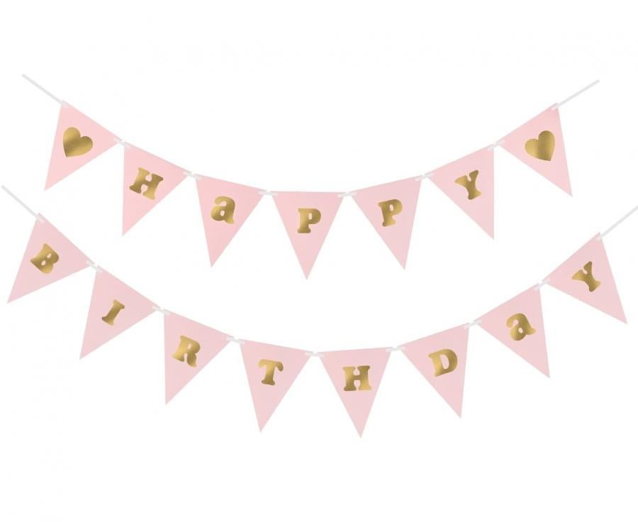 Girlianda rožinės spalvos vėliavėlės happy birthday