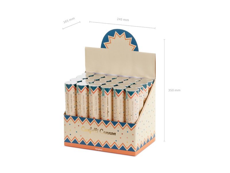 Cirko tematikos konfeti patranka, šaudo spalvingus konfeti, 20 cm ilgio.