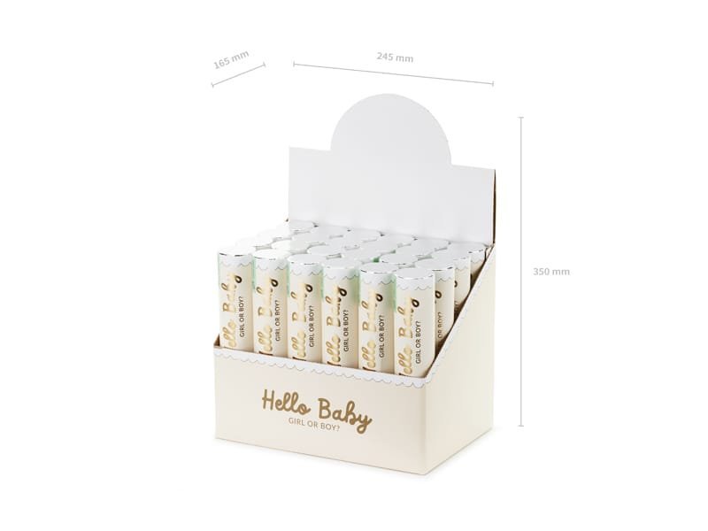 Konfeti patranka, iššaunanti popierinius drugelius trijų rožinių atspalvių. Vamzdžio ilgis – 20 cm. Veikia suspaustu oru, ne fejerverkas. Šaudymo atstumas: 5-8 metrai.