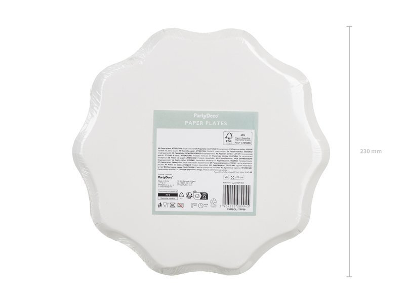 Žalios languotos popierinės lėkštutės su auksiniais, blizgančiais kraštais. Skersmuo apie 23 cm.
