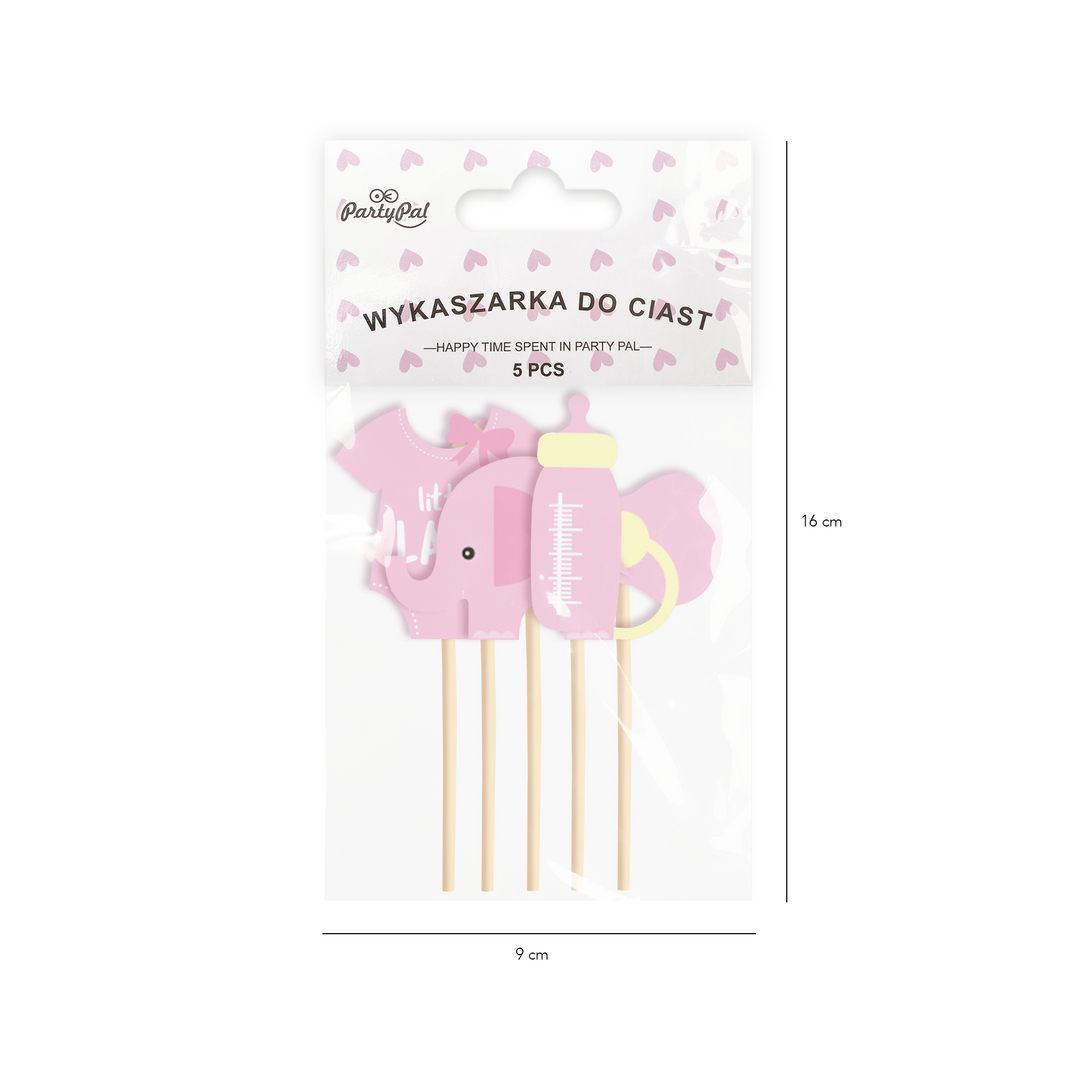 Torto smeigtukai Baby Shower Elephant pink 5 vnt. Matmenys: apytiksl. 10 cm 1 pak / 5 vnt
