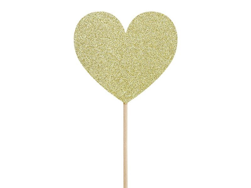 Keksiukų smeigtukai Sweet Love – širdelės, aukso blizgučiai, aukštis apytiksl. 11 cm. (1 pkt / 6 vnt.)