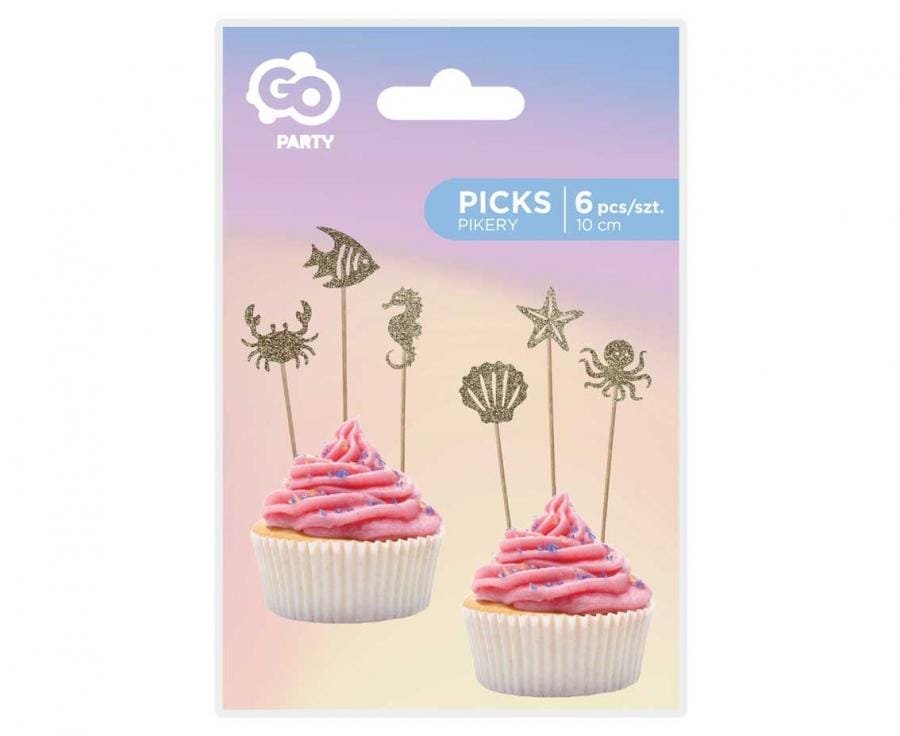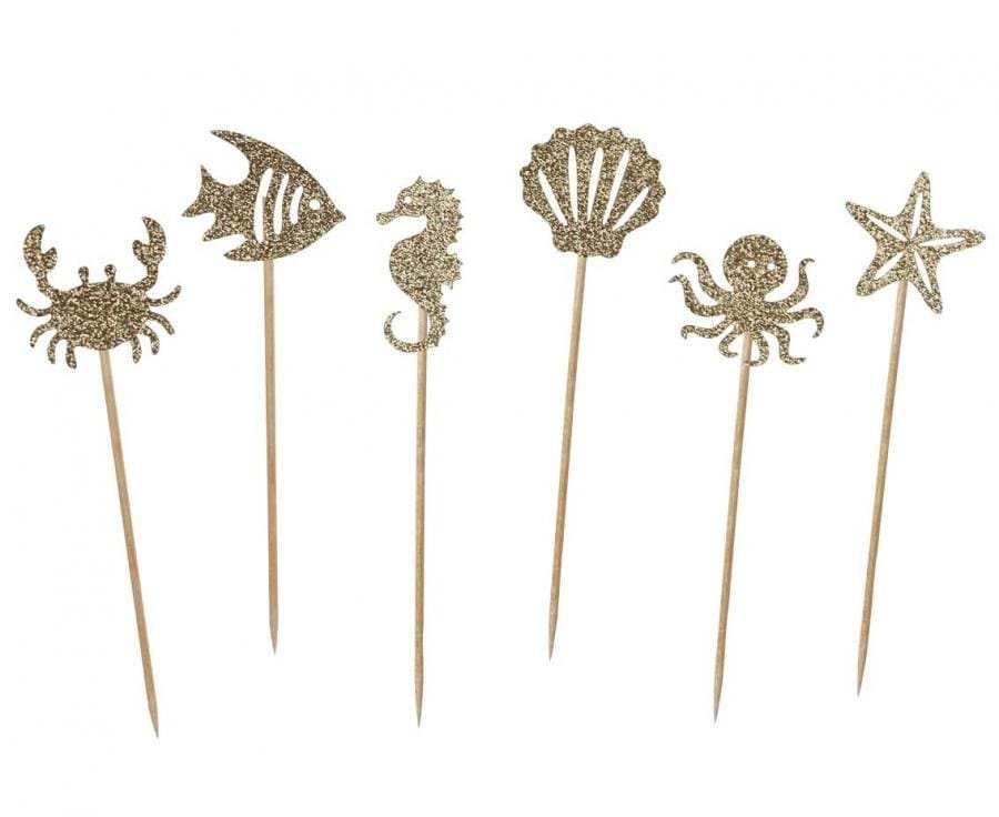Matmenys: 10 cm Spalva: Aukso blizgučiai Pakuotėje: 6 vnt Raštas: povandeninis pasaulis