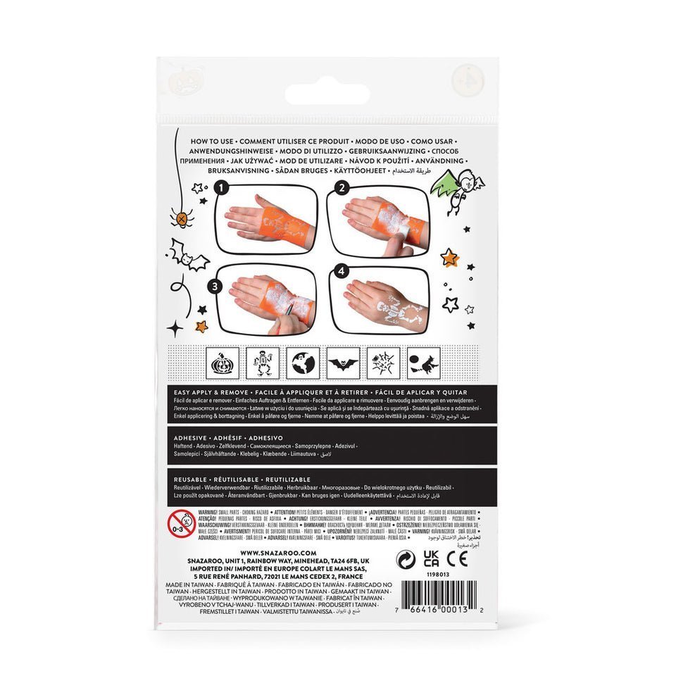 Šie Snazaroo veido dažų trafaretai yra puikus priedas kuriant linksmus dizainus. Yra 6 trafaretų dizainai, lengvai naudojami ir saugūs vaikams. Lipnus pagrindas išlaiko trafaretus vietoje, kad būtų pasiekti puikūs rezultatai. Lankstūs trafaretai lengvai prisitaiko prie veido, rankų ir rankų linkių. Galima pakartotinai naudoti ir plauti.